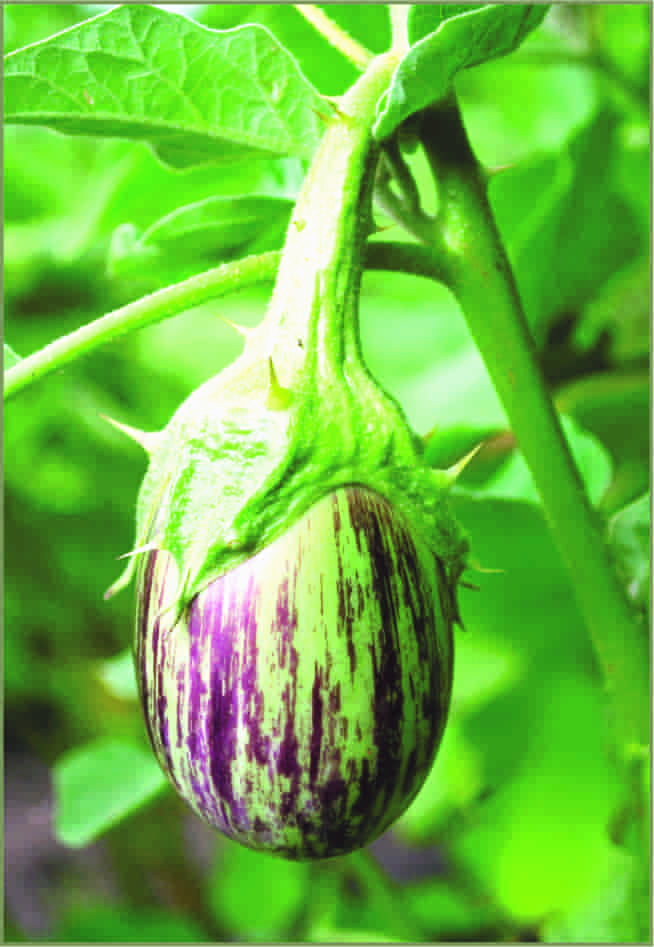 Duration (DAT) : 150 to 160Fruit color : Attractive green with purple stripesFruit Shape : OvalCalyx ness & spiny ness : Attractive green with spinesFruit weight (gm) : 60 - 70First picking (DAT) : 55 to 60Yield potential : Excellent Disease reaction : Good Tolerance to little leafSowing Season : Summer - January to February Kharif - June to July Rabi - September To October
